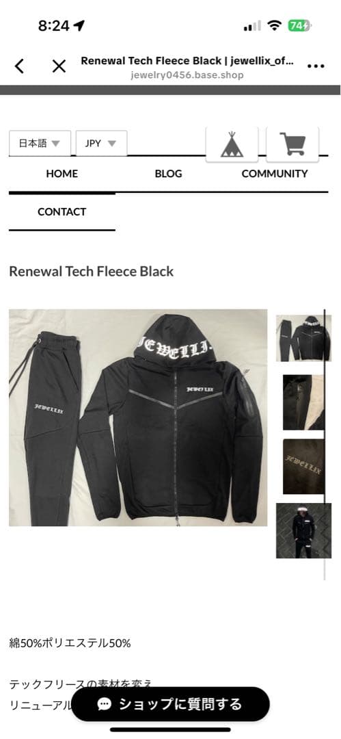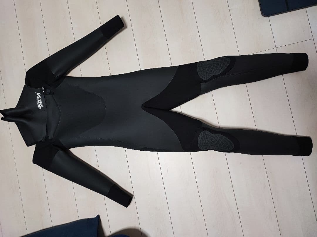 - ブラックの方を購入。光沢のあるジャージの感じで生地は薄いです。首の襟はよくあるジャージより低いタイプですね。サイズ感は普段サイズで良いと思います。