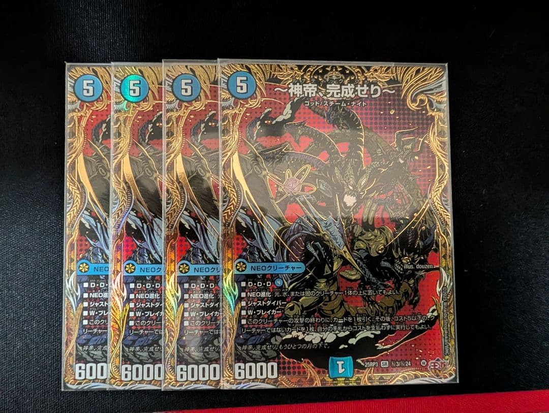 #もつデュエマから私の商品を絞り込みできます。値引き交渉受け付けます。カジュアルに使用していたデッキと汎用カードや光り物SR200枚以上、VR100枚以上と隙間にノーマルカードを詰め込みました。ご理解いただける方の購入お願い致します。ロマノフワンショットはシャコガイルなどのパーツが必要です。【同時購入で値引き】他の商品と同時購入1つに付き100円引き。デッキは追加1つに付き200円引き2セット商品は2つで500円で販売中!例:2セット商品を計4つの場合は、500円商品と500円商品の同時購入の値引きが適用し900円で販売します。単品での値引き交渉は1000円以上のもののみ『検討』致します。それ以外は通常値引きをご利用ください。・こちらの不備があった場合を除き、キャンセルは受け付けませんので、購入前に確認をお願いいたします。・DMプレイヤーが使用した物、又は使用する予定だった物です。状態は全てに対して全体的に状態が悪いものとしてB級品以下として販売いたします。・表面に傷が多い(文字が見えないレベル)又は、酷い折れが有る場合は、記載させていただきます。・以上の事からコレクションには不向きな商品で本商品はプレイ用として販売します。・同名カードは重ねておりますが、収録バージョンが違う場合がございます。コメントにてご確認ください。※バージョン統一の場合は統一と記載しております。バージョン違いの場合は記載していない場合がございます。・プレイマットは最大4つ折りになる場合がございます。・単体カード1枚あたり500円以下の商品は複数枚同じスリーブに入れて発送いたします。※デッキ商品はスリーブ無し購入の場合、スリーブに入れずまとめてジップ付きビニール入れさせていただきます。※まとめ売りにはスリーブはつきません。(全てにスリーブをつけて欲しい場合は購入前にコメントにて連絡ください。追加料金で承ります。)・同じ購入者様の場合は同封させていただきます。・即日発送(24時間内)や佐川急便/日本郵便への変更を希望する方はプロフィールの発送特約をご覧になってください。種別···複数カード種別···まとめ売り/引退品| カテゴリー: | ゲーム・おもちゃ・グッズ>>>トレーディングカード>>>デュエルマスターズ |